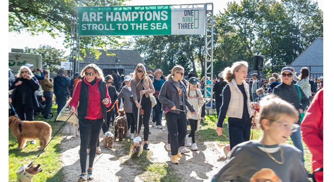 The Animal Rescue Fund of the Hamptons (ARF) held their 30th Annual Stroll to the Sea Dog Walk, a magical day for supporting the dogs and cats at ARF. This year more than six-hundred supporters rallied for the rain date of Sunday, October 8th to gather at picturesque Mulford Farm, owned by the East Hampton Historical Society, before the walk to Main Beach.
