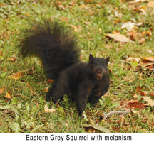 Although many animals have pigments other than melanin, the majority of mammals have melanin as their only pigment. The melanin pigment is responsible for two color ranges; one produces dark browns and blacks, while the other creates light reddish tans and blondes. It’s the delicate balance of melanin production that gives many mammals their natural color. When melanin cells are produced excessively during an animal’s development, due to genetic mutation, their skin, coat or plumage color will become darker, or in many cases turn black entirely. This was the case in my friends discovery of the black squirrel in Springs. Had my friend visited Olney, Illinois, he would have experienced the complete opposite. After all, Olney is the “White Squirrel Capitol of the World”.