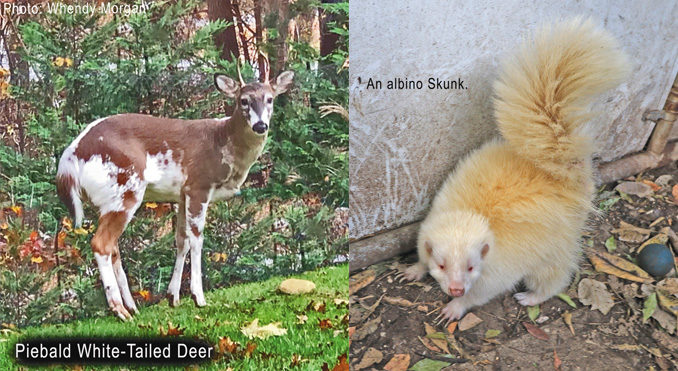 I recently ran into a friend who was excited to inform me, that he had seen an all black squirrel playing with a pair of grey squirrels in a wooded lot in Springs. He had never seen anything like it before and wondered if I knew any information about the species. Meanwhile, another friend texted me a photo of a brown and white patched deer and asked if I knew where the animal might have come from. Both of these folks were surprised when I told them that both the squirrel and deer were the same squirrel and deer they had always known about. The difference was simply a color issue that they hadn’t been familiar with. The black squirrel was in fact an Eastern Grey Squirrel with melanism, and the deer a white tailed buck with a form of leucism called piebaldism. So, what are all these “isms”, and how do they relate to an animal’s color?