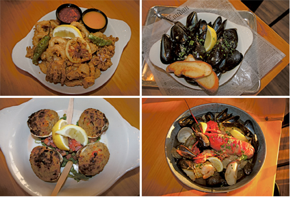 For ‘Apps’ we tried the smokey and moist BEACHIN’ BAKED STUFFED CLAMS, tender and flavorful FLEXIN’ THOSE MUSSELS in a delicious white wine, garlic, and shallot broth, and perfectly cooked MONTAUK CRISPY CALAMARI with shishito peppers. Although we didn’t try the SEA YA QUESADILLAS- to which you can add a choice of chicken, shrimp, or lobster, or TRUFFLE LOBSTER MAC ‘N CHEESE, they looked amazing as we saw them being served to another table.