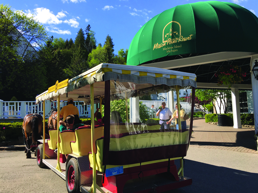 Mackinac Island is about 8 miles in circumference and 3.8 square miles in total area. It is located in Lake Huron, at the eastern end of the Straits of Mackinac, between Michigan State’s Upper and Lower Peninsulas. The island was home to an Odawa settlement before European exploration began in the 17th century. It served a strategic position as a center on the commerce of the Great Lakes fur trade. This led to the establishment of Fort Mackinac on the island by the British during the American Revolutionary War after which it was the site of two battles during the War of 1812. According to the 2010 US Census, the island had a year-round population of fewer than 500 who can be reached by private boat, ferry, small aircraft, and in the winter, by snowmobile over an ice bridge. We had the best experience with Shepler’s Ferry (celebrating 75 years); they delivered us safely to the docks and our luggage came promptly before our own arrival at Mission Point resort. www.sheplersferry.com