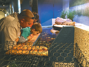It was really exciting to watch the feeding of the Sand Tiger Sharks. Mr. Dan explained that they are the only shark species that swims to the surface and swallows air in order to regulate their buoyancy enabling them to remain motionless at any depth while seeking prey. Sand Tiger Sharks have the lowest reproductive rate among sharks, giving birth every two years to one or two pups after a gestation period of 9 to 12 months. This shark is ovoviviparous. The embryos initially are nourished by the yolk in their egg and later consume slower-developing embryos while still in their mother’s uterus. Sand Tiger Sharks are a prohibited species for recreational and commercial fishermen in NOAA’s Highly Migratory Species Compliance Guide.