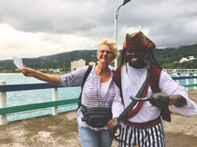 Ocho Rios welcomed us with a big hug from a pirate, a blue sky and waters so turquoise that we would have loved to jump right in. Jamaica is an island country situated in the Caribbean Sea that depends heavily on tourism, welcoming an average of 4.3 million tourists annually. We had booked a one hour bus tour from the terminal that would take us through the charming town and at times off the beaten path to the Martha Brae River where we boarded a 30-foot handmade bamboo raft. Floating three miles down the Martha Brae River is probably one of the most romantic things to do in Jamaica on an overcast day. The river has over the years played host to a number of celebrities including HRH Queen Elizabeth II, Richard Branson, Chuck Norris, the late Kenny Rodgers and the lovely Jane Seymour, to mention a few. Jamaica presents a magnificent palette of experiences, a kaleidoscope of colors, taste, rum, Bob Marley’s rhythms and sway. www.visitjamaica.com