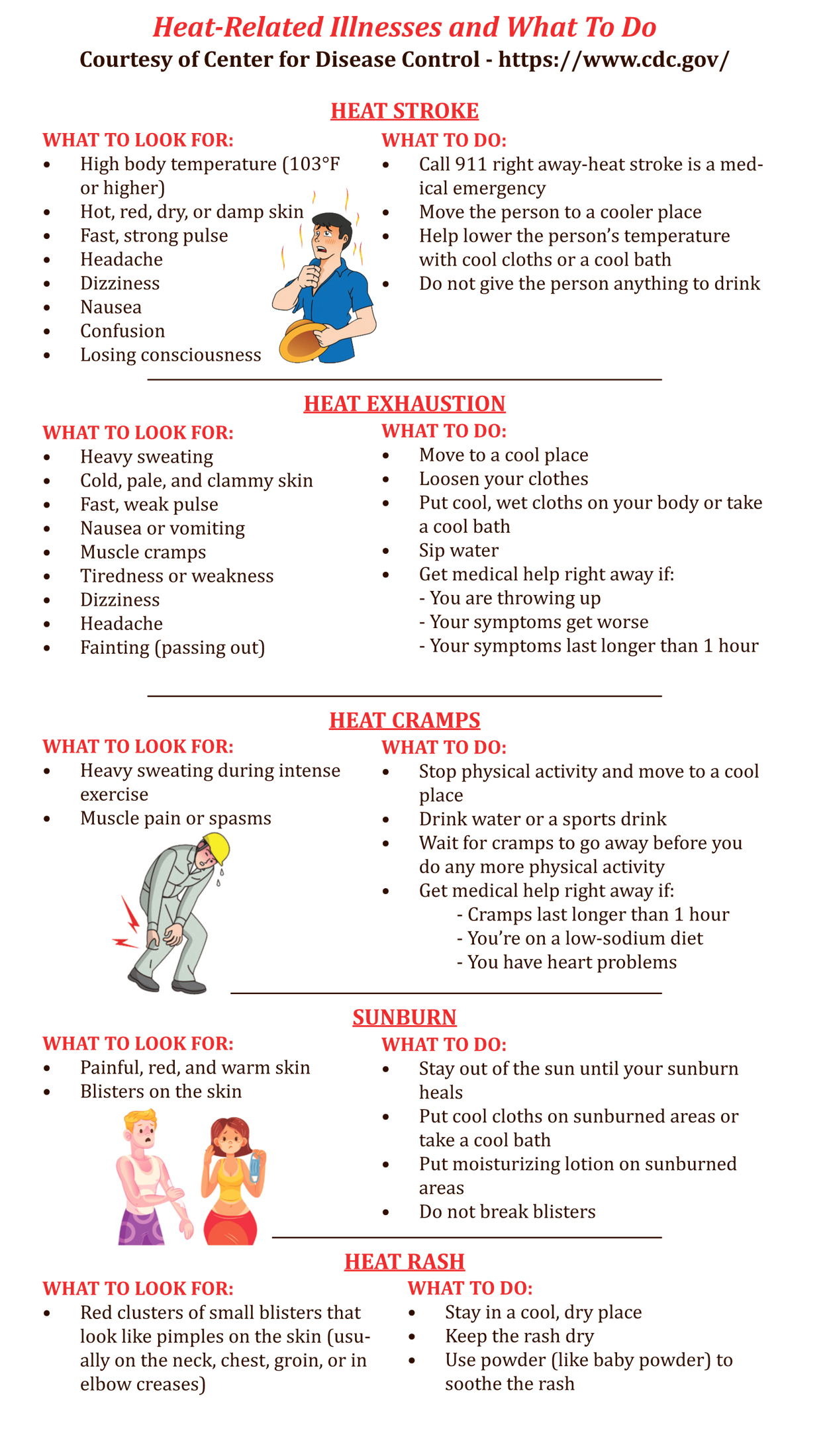 Heat is one of the leading weather-related killers in the United States, resulting in hundreds of fatalities each year. Heat can be very taxing on the body; check out the heat related illnesses that can occur with even a short period of exposure. Everyone can be vulnerable to heat, but some more so than others. According to The Impacts Of Climate Change On Human Health In The United States: A Scientific Assessment the following groups are particularly vulnerable to heat; check in with friends and relatives who fall in one of these populations, especially if they don’t have air conditioning.