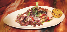 The Fritto Misto is a new take on fried calamari offering a combination of shrimp, calamari and banana peppers all lightly coated and fried, served with marinara and a sweet chili sauce. A generous portion of Fire Roasted Octopus with chermoula sauce is accompanied by a delicious marinated lemon garbanzo salad.