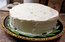 6. Frost the completely cooled cake with a “crumb coat” (a thin layer of frosting used to seal in any crumbs so they don’t show up on the finished cake) and refrigerate for about 20 minutes. Then, ice with your final coat of frosting, decorate if you wish, and ENJOY!