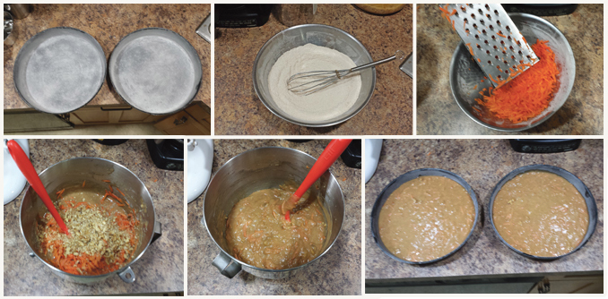 3. In a large bowl with a mixer at medium speed, beat eggs, oil and sugar. With mixer on low speed, gradually add and mix in the flour mixture just until combined. Do not overbeat! Grate your carrots. 2½ cups equals 3-4 large carrots.
