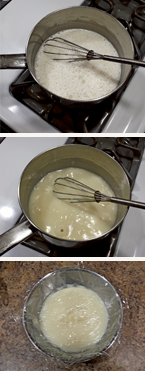 1. In a small saucepan, over medium heat, whisk flour and milk together and heat just to a boil while whisking constantly. It will become very thick and pudding-like.