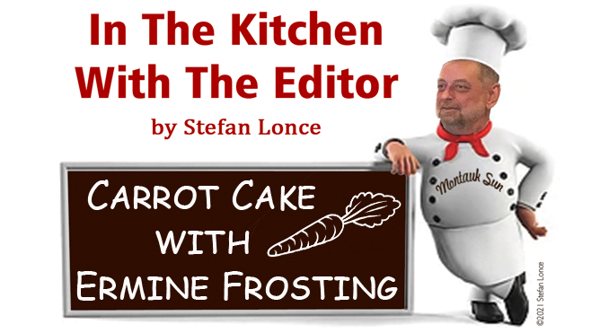 Well, anyway, it became a tradition for me to bake a carrot cake every year for his birthday. I never forget it since he shares a birthday with my late father. Over the years I’ve made significant changes to the original recipe, including adding more carrots, vanilla and cinnamon. I also swapped out the original cream cheese frosting for an Ermine, or “boiled milk” frosting. I found the cream cheese frosting to be overly sweet. Besides, this frosting doesn’t use powdered sugar, which I don’t always have on hand, but you can use your favorite cream cheese frosting if you wish.