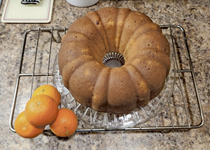 - Turn the cake onto a platter and let completely cool on a rack, if icing, or until just warm, if not. If icing, mix together the powdered sugar and orange juice. Drizzle over the top of the cake. If not, dig in. ENJOY!