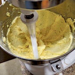 - In the bowl of a stand mixer, or a large mixing bowl, beat the softened butter for 2 minutes, until light. Add half of the sugar/zest mixture and beat for 2 more minutes, scraping the bowl as needed. Add the remaining sugar/zest mixture and beat for 4 more minutes, scraping the bowl as needed.