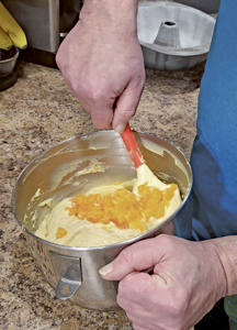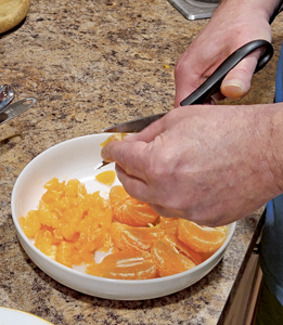 - With a rubber spatula, gently fold in the orange pieces and juice.