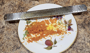 - Remove the peel from the zested oranges and remove as much of the white pith as you can. Separate the sections and then, using kitchen shears, cut them into SMALL pieces over a bowl or rimmed plate, catching the sections and juice. You should end up with about 1¼ cups of pieces and juice.