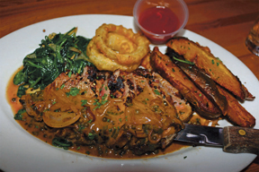 Some of our favorite appetizers include: the steamed Edamame tossed in sea salt, Prince Edward Island Mussels with wine and garlic or marinara, crispy General Tao’s Cauliflower tossed in a blended sweet/spicy sauce, Baked Whole Clams Oreganato topped with light crisp blend of spices and herbs. Another baked mollusk treat is their Baked Local Oysters. Smothered with blue cheese crumbles and panko, these whole oysters are bursting with flavor. For salad, my favorites are the Fried Calamari Salad with organic field greens, crispy wontons, shredded carrots, cherry tomatoes & scallions, and a sesame miso-ginger vinaigrette, or the Warm Sunflower Seed Crusted Goat Cheese Salad served over field greens with roasted red peppers and a light basil vinaigrette; just two of the many delightful salad choices.