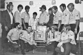 On a sad note, John Bolton, a twenty-year member of the Montauk Fire Department, passed away in Jupiter, Florida on July 19th. John was a native of Montauk who moved to Florida and worked in the construction business. John was a very active Member of the Montauk Fire Department. He served as Captain of Company No. 1, and was on the Montauk Ambulance Squad as an EMT & AEMT. On behalf of the officers, men and women of the Montauk Fire Department, I offer our condolences to the Bolton family. John is third from the left in the back row, in the classic MFD photo you see here.