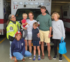 Company No. 4 member and EMT Jesse James took some of her visiting family and friends for a tour of the Montauk Fire Department. Kneeling in the picture are Mara Certic, visiting from New Orleans, with 3 year old Tom Partridge and 7 year old George Partridge who are visiting from Winchester, United Kingdom. The happy group is flanked by their mother Mia Certic and their aunt Jesse James. I think it is fantastic when people visit us and I encourage anyone who would like a tour of the fire department to stop by.
