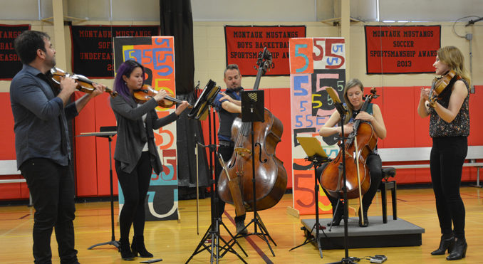 On Saturday, May 11, Music For Montauk (M4M), spearheaded by President Lilah Gosman, soprano and Vice President Miloš Repicky, pianist-conductor, was eagerly welcomed by classical music aficionados. Celebrating M4M’s fifth year in Montauk, the dynamic husband and wife team opened the spring concert by thanking the attendees for coming, the fifth graders for the colorful posters that adorned the stage and Principal Jack Perna, for the use of the school’s gymnasium.
