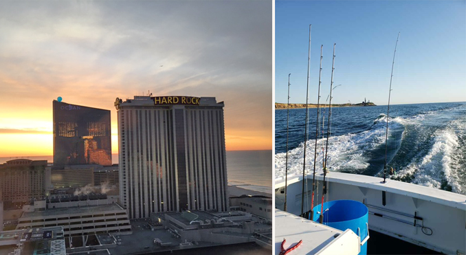 Later in the morning feeding dolphin came close to shore just north of the historic Steel Pier. The Steel Pier originally opened on June 18, 1898. It featured musical acts like Al Jolson, Frank Sinatra and Diana Ross & the Supremes. Diana Ross & the Supremes played sold out weekly shows in the summer of ‘65, ‘66, & ‘67 in the Pier’s Music Hall Theater and Marine Ballroom. Today the bigger giant Ferris Wheel built in 2017 is one of Atlantic City’s most recognizable landmarks, especially from the water. After the dolphin left I noticed birds working. Through binoculars I could see feeding fish swirl under the birds. I wondered if this action would be happening in Montauk when Captain Steve and I would fish in a few days.