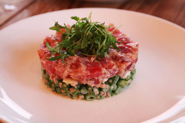 As we were seated at a lovely round corner table, our friendly waiter Brent greeted us offering suggestions from the menu of Small Plates, Wood Fired Pizzas, and Large Plates. Perusing our choices we decided on a few small plates, then Brent sent word that the Chef would be sending out some of her favorite dishes as well; we had quite a feast. From the Small Plates we tasted the highly recommended Tuna Tartare which was an amazing blend of