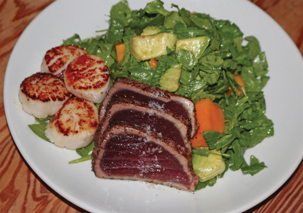 From the Large Plates, we had their signature Rusch Buger and the Yellowfin Tuna & Sea Scallops. The burger was cooked perfectly and garnished with cambozola, bacon, Louie Sauce, and caramelized onion resulting in a mouthwatering mix of flavors; a burger to remember. The delicately pan seared Yellowfin Tuna and Sea Scallops were tender and flavorful, perched upon a bed of Arugula mixed with mango and avocado.