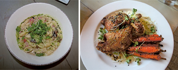 Stepping away from the seafood, the Cavatelli in another example of a favorite dish that changes each season; the cavatelli itself being the constant. This season it’s prepared with black-garlic-confit-cream sauce, roasted red pepper, grana Padano, shitake mushroom, Meyer lemon, and basil; creamy, yet light and delicious. Finally, Ken’s search for the perfect crispy duck has ended! Crispy outside and tender inside, the Crispy Duck Legs are something I personally would not normally order. However, I really enjoyed the combination of the crisp duck along with the array flavorful sides, all with a tahini-soy glaze. The crispy duck alongside honey roasted carrots with a hint of honey sweetness, along with the tart slices of granny smith apple and the flare of fennel was like ‘a little taste of fall’ in a summer dish.