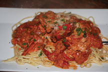 For starters, we chose a few options that warm you up on a cool fall evening. The spicy/sweet fall off the bone BBQ Spare Ribs which never disappoint. The Homemade Fried Zucchini Chips were hot, thick, crispy, and delicious with the cool creamy dipping sauce. Finally, the Baked Clams with a perfect blend of bacon, clam and spice were a flavorful treat.