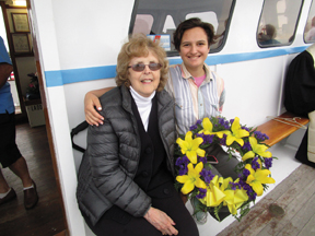 On the Ebbtide this year were several family members of Captain William Butler, who ran a charter boat out of Montauk starting summers in the 1960’s, while he was teaching English at East Hampton High School. His wife, Lynn Butler, now of Florida, threw in a wreath along with her son, Nate, of New Jersey, and daughters Jennifer Butler Lyman and Alisa Sanabria, of Delaware and East Hampton. “We had a great time living in Montauk for many years, and Willie enjoyed fishing here,” said Lynn Butler. “We’re all glad to be back.”
