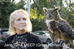 The Great Horned Owl is another common owl on the east end. A much larger species of owl compared to the Eastern Screech owl, yet they both share common features and behaviors. Both share the ear tufts (called plumicorns) while their actual ears are hidden on the sides of the head; however, the Great Horned owl’s tufts are much larger which gives the species its name. Their eyes are just a little smaller than human eyes, and have a wide field of view. Rather than turning its eyes, the owl must turn its entire head. The head can turn in all directions and rotate its neck 270 degrees. Their eyes and ears are sophisticated nocturnal hunting tools. The Great Horned owl can hear a mouse move a twig 75′ feet away. With a wing structure that almost eliminates sound in flight, and very powerful legs, feet and talons capable of applying 300+ pounds per inch of gripping / crushing power. In some large female species, the gripping power can be compared to that of a Bald Eagle. If you’ve ever visited one of the many local events celebrating our awesome wildlife, you may have had the pleasure of meeting “MEEP” the Great Horned Owl. Meep is a great ambassador for all our wonderful wildlife here on the east end.