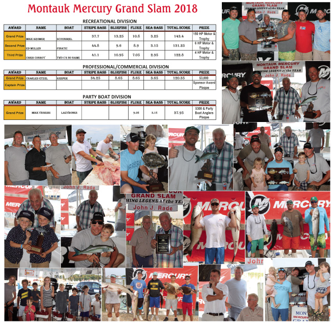 John Rade’s whole family watched proudly as he was honored as “Fishing Legend of the Year” at the 2018 Mercury Grand Slam Charity Fishing Tournament on Sunday, July 15 at Uihein’s Marina in Montauk.