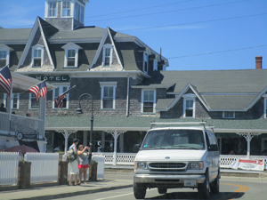 At the top of the hill, we were met by the famous Aldo’s Car, Moped and Bike Rental people, who took us to one of their shops in a white van. We always look forward to greeting Leo Leone, Jr., of Aldo’s Block Island Boat Basin, where they rent cars and bikes (401-466-5811.) His whole family has several businesses on this island, for three generations, started by his grandfather Aldo Leone of Italy. In town there is Aldo’s Bakery, Aldo’s Italian Restaurant, Aldo’s Ice Cream, and Aldo’s Mopeds and Bikes. Leo’s father, Leo Leone, Sr., runs the town businesses. His father was a baker who came to work at the Spring House on Block Island for ten years, and then started his own businesses there.