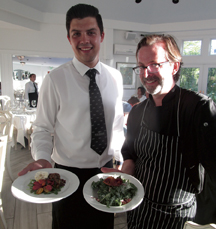 Our charming waitress, Georgia, of Jamaica, brought over our first course of the best Eggplant Caponata we had ever tasted, with an amazing blend of flavors. It was served with heirloom tomatoes, fresh mozzarella, watercress and balsamic reduction. I tried their “Kale Wedge” and found it surprisingly tender, with roasted tomato, pickled red onion, pancetta, bleu cheese, and buttermilk tarragon dressing. Our main course consisted of the most succulent Grilled Island Swordfish, with white beans, kale, roasted garlic, and olive tapenade—and my partner had the “Bomster Scallops,” served with sweet corn cream, crispy pork belly, pea tendril, pickled carrot and mint salad. The food was totally creative and amazing! In keeping with their all- homemade theme, the desserts were spectacular—a melt in your mouth Tiramisu, and a Buttermilk Panna Cotta with berries that was irresistible. We can’t wait to come back to the Hotel Manisses again! For information, visit www.hotelmanisses.com or call 401-466-9898.