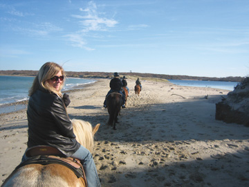 Aside from the availability of riding beautiful horses through thousands of scenic acres of Suffolk County Parkland in Montauk, the ranch is full of nature’s beauty. The cover photo is of the lake behind the stable. The view changes daily with roaming deer and fox, a variety of water fowl- including geese, ducks, swans, great blue herring, and even an occasional Bald Eagle perched in a tree or doing fly-over.