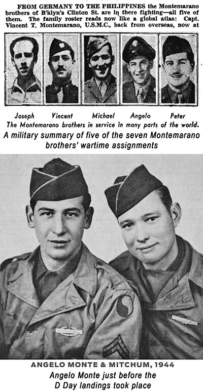 Angelo was the fifth of seven boys, born to Angelo and Filomena Montemarano of Carroll Gardens in Brooklyn. All of the children were born in the family apartment building, above the family-owned restaurant called Monte’s Venetian Room. Filomena was brought to this country from Avellino, Italy, as a bride for Angelo Sr., who had already been in this country since childhood.