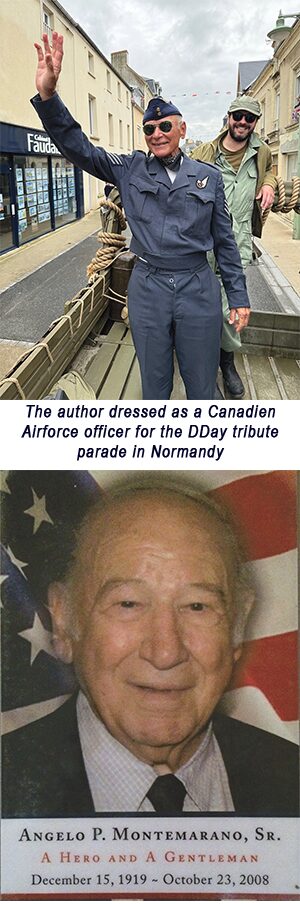 I’ve always felt a burning desire to celebrate this man’s incredible story, and it all came to fruition when the TV star Oliver North came to our family’s business, Gurney’s Inn Resort in Montauk, NY, to do a segment of his successful series War Stories. Ollie, as he was known, was invited to interview some local WWII veterans, and he was told by our marketing director, Ingrid Lemme, that Angelo Peter Montemarano was a D-Day survivor. That made Ollie even more interested to commit to the filming at our resort. It was only then, during the actual interview, that we all learned about Angelo’s incredible heroism and good fortune. Before that, he never said a word about his wartime service, simply commenting that it was too horrible to speak about.