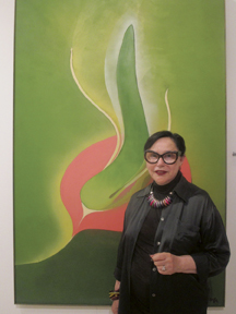 In keeping with the natural beauty of the East End, artist Katherine Liepe Levinson of Riverhead, had some of her “Earth/Water” series of photographs at ArtMarket. She shows her original and beautiful water shots around many East End galleries, including Alex Ferrone in Cutchogue. Another nature-loving artist– Denise Cummings, of Manhattan, showed stunning abstract flowers that she painted from her “Designing Flowers Series.” She also paints them on gorgeous large screens, in amazing collages. Born in Hawaii, she has a natural feeling for nature.