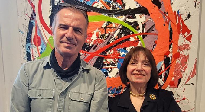 Artist Haim Mizrahi, of East Hampton, and writer Joanne deSimone, of Riverhead, combined their talents at a unique art show and poetry reading held at Ashawagh Hall in Springs the weekend of April 16, 17 and 18. Mizrahi, who is also a writer and the host of the “Hello, Hello” morning show on LTV in East Hampton, had a one-man show of his colorful abstract paintings, called, “In Broad Daylight,” over the three day weekend, with an opening reception on Saturday afternoon. Throughout the weekend, Mizrahi and deSimone also sold copies of their new book of their combined poetry, called “Slipcover,” which is also for sale on Amazon. On Sunday, April 18, they also had a poetry reading of their work, joined by Emily Weitz, of Sag Harbor, who is a former writer for the Sag Harbor Express and Dan’s Papers. Mizrahi has had many shows at Ashawagh Hall, the former Vered Gallery, and other venues. deSimone, who also hosts the LTV show “Notes & Notions From the Writing Desk,” is also the author of several books, including “The Metro Cats,” “Spills From A Quill,” and the most recent, “Inside Out Yoga,” co-authored by Sandra K, a hot yoga instructor and host of the “Cafe!” show on LTV.