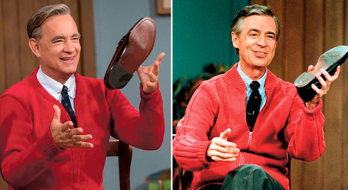 Left: Tom Hanks in "A Beautiful Day in the Neighborhood" Right: The real Mr. Rogers