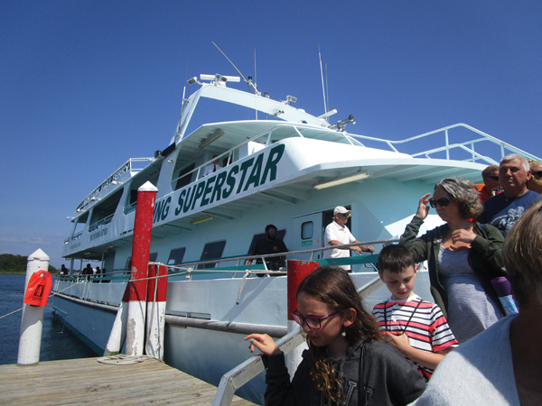 “I’m proud that we’re the first town in the country to go off the grid with an offshore wind farm,” said Cindy Lasser, who narrates the boat tour. “I want to stick with it and see how it works. It’s so much fun to see the delight on the faces of the people who take my tours.”