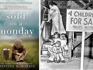 Sold On Monday – by Kristina McMorris A 1948 photograph of four children on the steps of a home under a sign reading “4 CHILDREN …more