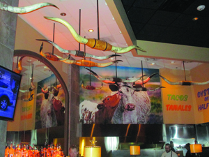 While in Dallas, we were dying to try a real Western-style restaurant, so we walked over to “Stampede 66” at 1717 McKinney Avenue, owned by well-known chef Stephan Pyles. This huge restaurant had lots of Western character: steer horns hanging from the ceiling, lit-up bottles on the bar, steel horse artwork over the open kitchen wall, and a cottonwood tree centerpiece in the middle of the 200-seat dining room. Stephan Pyle learned to cook in a Phillips 66 truck stop in Big Spring Texas, and over the years he has become an expert in real Texas favorites, along with Executive Chef Michael Matis. We slipped into a comfortable banquette and over Passion Chili Margaritas, we sampled some of the delicious Barbecued Brisket, cooked 5 days, smoked and slow-cooked for 72 hours. We also enjoyed the award-winning Honey-Fried Chicken, with Buttermilk Biscuits and Gun Barrel Gravy. Sumptuous desserts included the Butterscotch Pudding with Salted Caramel, and the Seasonal Fruit Cobbler. Visit www.stampede66.com