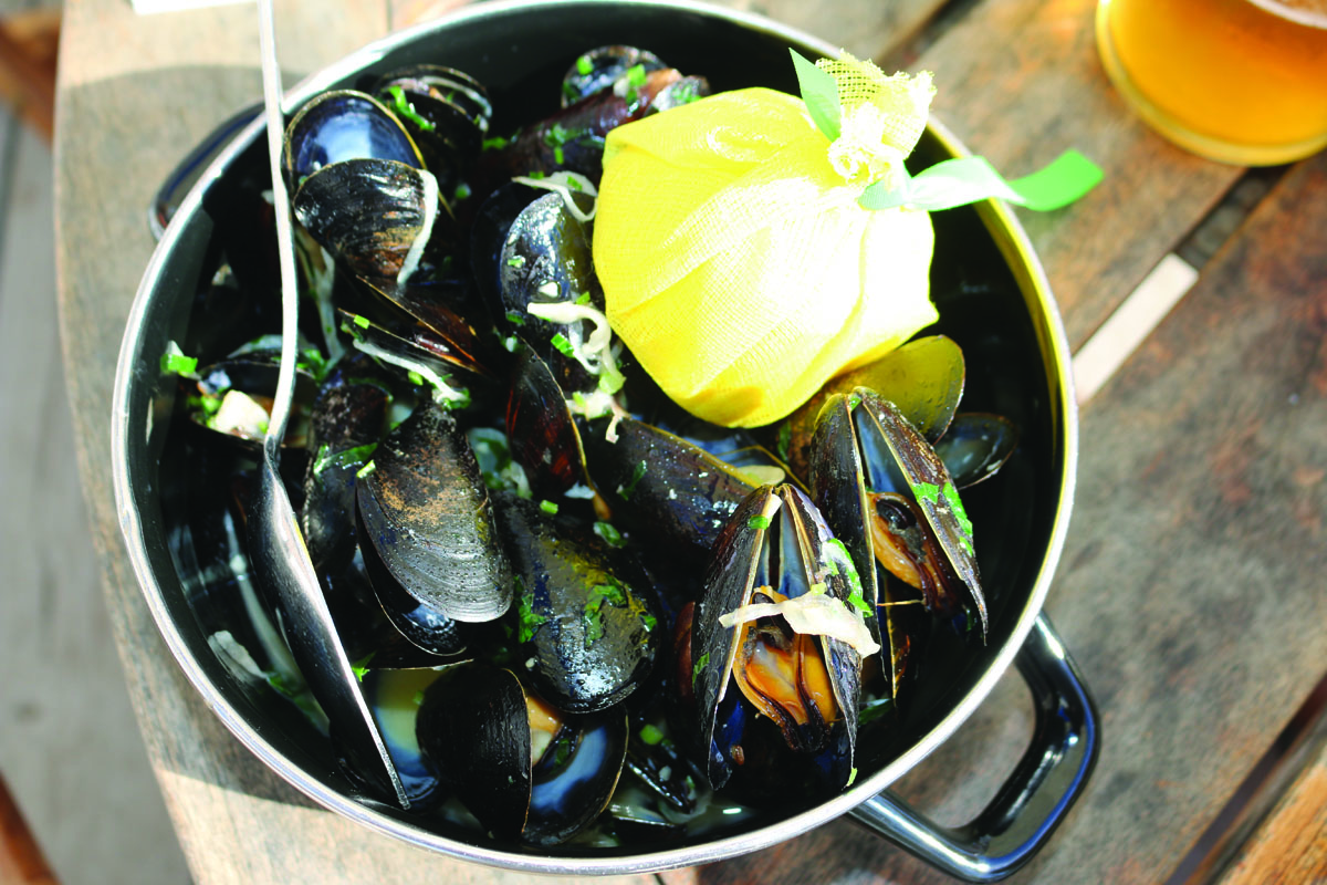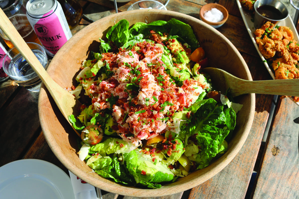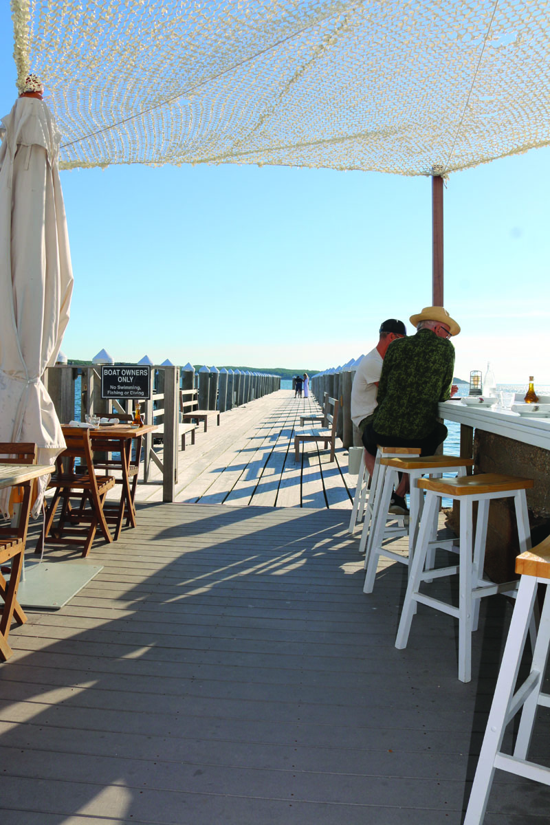 Duryea’s Lobster Deck on Fort Pond Bay offers one of the best outdoor dining locations in Montauk. The deck leading up to a long pier, with availability for boaters to tie up, is arranged with comfortable seating shaded by overhead sails that add to the relaxed seaside ambiance.