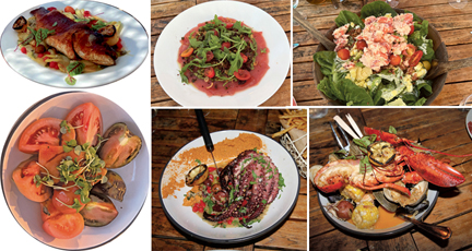 To start, we picked on the generously portioned Crudites Platter arranged with a colorful crunchy array of farm fresh vegetables and sides of Dijonnaise and Tapenade dip. A beautiful and healthy way to start; white and green asparagus, red/yellow/and golden beets, radishes, cherry tomatoes, fennel, celery and carrot sticks, white/green/ and purple cauliflower- an eye-catching color palette of vegetables. Next was a longtime favorite, Duryea’s Lobster Cobb Salad. Arriving in a large wooden bowl filled with greens topped with eggs, tomatoes, avocado, bacon bits, sliced sharp cheddar cheese, and of course eight ounces of lobster meat all dressed with a light house made tarragon buttermilk ranch dressing. This ever-popular salad generously serves at least three people offering a wonderful blend of flavors and textures. Highly recommended by Shea, and a new item on the menu is Tuna Crudo with anchovy vinaigrette. Thin slices of fresh tuna sprinkled with basil, roasted capers, sliced cherry tomatoes and olives. The anchovy vinaigrette dressing makes this dish stand out with its rich, umami flavor adding a layer of complexity to this popular Crudo delicacy.