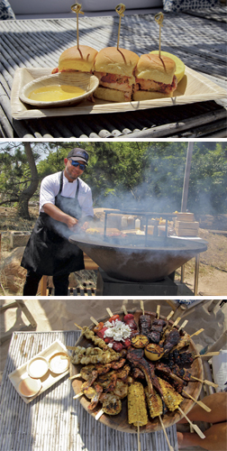 From the grill, where the chefs were preparing an array of marinated Asado Brochettes [grilled skewers of meat, fish, and vegetables] we were presented with the gorgeous ASADO Platter. The key to asado is cooking over low, indirect heat, often with wood embers, for extended periods, ensuring the meat becomes incredibly tender and infused with a smoky flavor- which from our experience it apparently works. Our visually and aromatically delightful platter had 3 skewers of each brochette available: Octopus, Calamari, Shrimp, Lemon Pepper Chicken, Skirt Steak, Grilled Lamb Chops, Corn on the Cob, and Tomato, Watermelon and Feta. Each was perfectly charred and tender, with unbelievable flavors that can be amplified with a variety of dipping sauces. The Yogurt Dill is perfect for the meats, the Spicy Harissa is recommended for the seafood, while a gentle Aioli is a good option for each of them. It’s really hard to say which was our favorite as everyone has a type of meat or fish they prefer, but they were all outstanding. Each brochette is also available in pairs of two, and although not included in the platter, a grilled ½ lobster on the half shell is another choice.