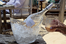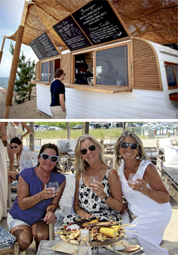 At the end of the North Fork- a bit past Greenport and just before the Orient Point Ferry is Duryea’s Orient Point Restaurant. The view is stunning as one meanders passed the restaurant along the marina-side boardwalk. Beyond the docked boats is the beautiful waters of the Long Island and Block Island Sounds, yet just before you reach the water, perched on a white sand beach is Duryea’s Beach Club. Adorned with natural burlap style sails, beached wooden chairs and loungers, all dressed with lovely blue and beige themed cushions-it feels as if you’ve been transported to an elegant seaside resort somewhere in the Mediterranean. Whether you’re sitting on loungers, in the sand box area, or on chairs at the water’s edge under macrame umbrellas, the location is perfect for relaxing while enjoying a glass of wine and casual seaside dining. This hidden gem is available right on the north fork- a perfect complement to their Duryea’s Montauk restaurant on the pier extending into Fort Pond Bay at the end of Long Island’s South Fork.