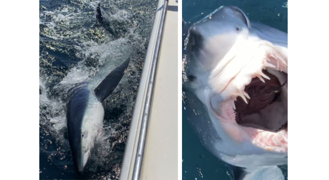 We pulled out of the Marine Basin around 7am with Mary Ann, her daughter Emma, son Enzo and Jack. It was Tuesday August 18th. We were looking for sharks. Thunderstorms, rain and lightning throughout the early morning hours had delayed our departure. After steaming 11 miles south of the lighthouse, we were on a consistent spot at the top of Block Channel. As one local Captain once said to me, “everything comes up Block Channel.”