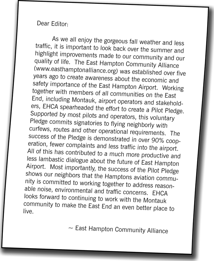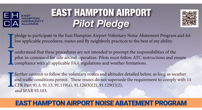EHCA is working on forming a Hamptons User’s Group (“HUG”) consisting of representatives from EHCA, helicopter, seaplane, jet and light general aviation aircraft operators, the airport manager and a representative from the Town Board. HUG will meet monthly during the summer season and invite the public to participate.