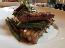 As my plat principal (main course) I ordered the Buttermilk Fried Chicken Thighs, served with French Beans over multi-colored Fingerling Potatoes and shredded Celeriac. My husband, who had left the choice between the Fish of the Day and the Pho Duck to the waiter, was indulging on a crispy duck leg, French beans, Udon noodles, combined with a delicate broth representing an intricate subtlety often found in traditional Asian cuisine but not often as perfect as here. We had a culinary blast!