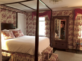 Our accommodation, The Caldwell Room, was delightful! A romantic 4-poster canopy bed with lush bedding and an upholstered stepping bench, antique furnishings, silk fabric padded walls, and soft lighting. Adjoining is a fabulous bath newly renovated with a large subway tiled shower and everything that the most discriminating traveler could possibly require. The Greenbrier Room on the same floor featured a four-poster king size bed with sitting area in front of a working fireplace, and a mixture of antique furnishings with modern day touches. The room also boasts a newly renovated ensuite bathroom with a large walk in glass enclosed shower. This elegant residence truly delights, with plenty of outdoor space including a sun deck, a lovely veranda and a quaint gazebo to suit any mood. Btw, the âpetite breakfastâ the next morning featured fresh berries, granola, yogurt and the largest and best croissants I have tasted so far, and that includes the ones we had in Paris. www.maisonmarcelwv.com
