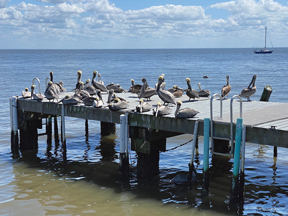 The Cedar Key Chamber of Commerce advertises its tiny island as “a place where time stands still. A quiet island community nestled among many tiny keys on the Gulf Coast where the small town feeling is absolute”. That, and that fact that the year round population counts for only about 800 full time residents, convinced us to visit. Cedar Key is one of several barrier islands off the Gulf Coast, located about 50 miles southwest of Gainesville, and sits three miles out into the Gulf of Mexico. Highway 24 is the only road coming into town and crosses over the salt marshes and channels on four small, low bridges. The nearest major airports are Tampa and Orlando, a regional airport in Gainesville, and there’s an airstrip on the island where small planes may land.
