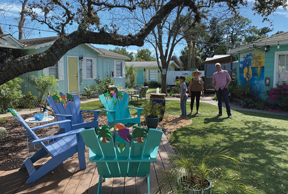 As we were researching accommodations for our 2-night getaway we realized that many of the places were booked, even during the week. By sheer luck Pirates Cove Cottages had a last minute cancellation that would turn out to be for us the most charming and perfect place with beautiful views from our private, raised patio overlooking the ever changing marshes. We could have fished and kayaked, tide-depending, right from the backyard while sunrise and bird watching was a given. Check-in was at an unheard 1pm that allowed us to practically add an entire afternoon of island bliss.